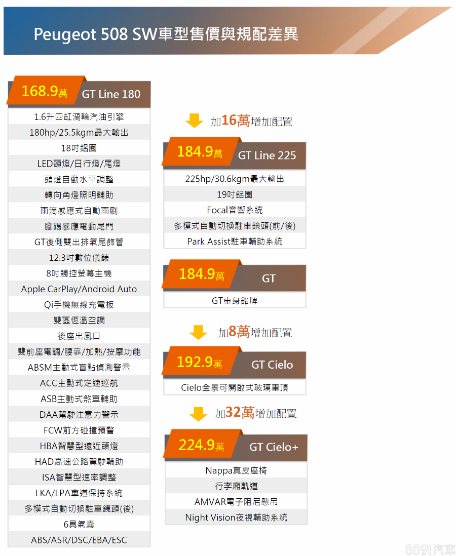根據銷售端表示,大改款508 SW目前已有少量現車抵台,且最快明年1月就可以開始交車,正式上市及最終售價預計在1月中旬待總代理進一步公布相關資訊,8891新車也會持續帶來第一手消息!