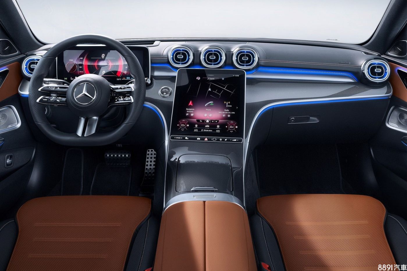 如果說大改款C-Class外觀跟隨小改款E-Class,那車室就是沿襲大改款S-Class的重點特色:中控大尺寸觸控式顯示幕的搭載。其他變化還有換上已於小改款E-Class上可見、附有觸控介面的新式樣三輻式方向盤,出風口位置也獲得上移,AMG Line版本則擁有專屬鋁質及木質飾板、棕黑配色等妝點。