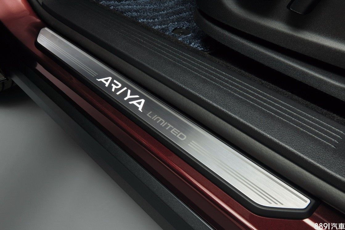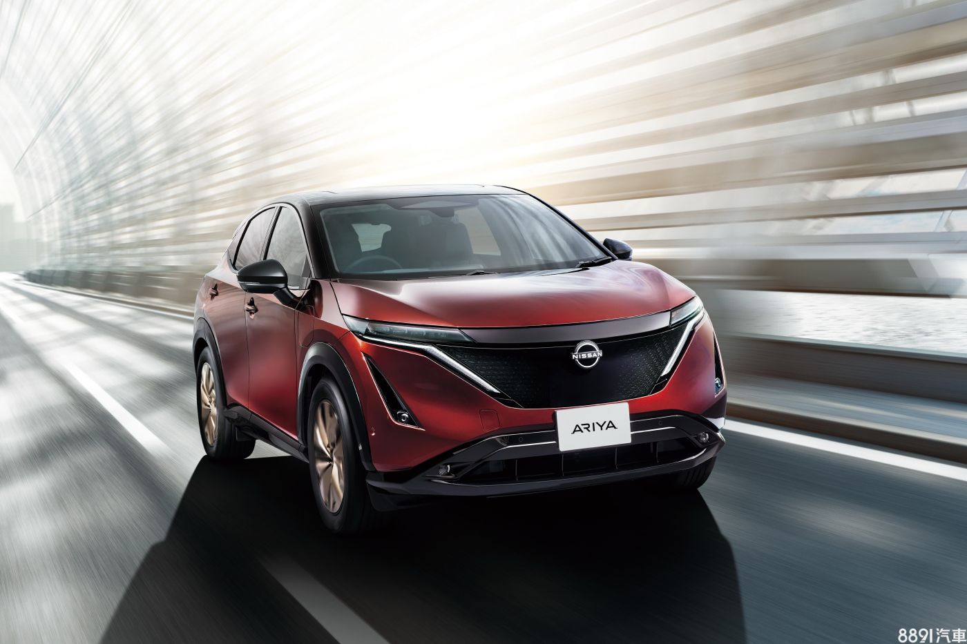 Ariya是以2019年東京車展上的同名概念車為基礎打造,搭載了Nissan-Renault-Mitsubishi聯盟的全新EV平台,外觀融入未來與日本傳統元素,包含以日本傳統圖紋設計的仿水箱護罩、LED光源設定的廠徽、狹長且犀利的LED頭尾燈組等特徵。而自B柱向下傾斜的車頂幅度,以及延伸的擾流尾翼等,則強化整體跑格氛圍。
