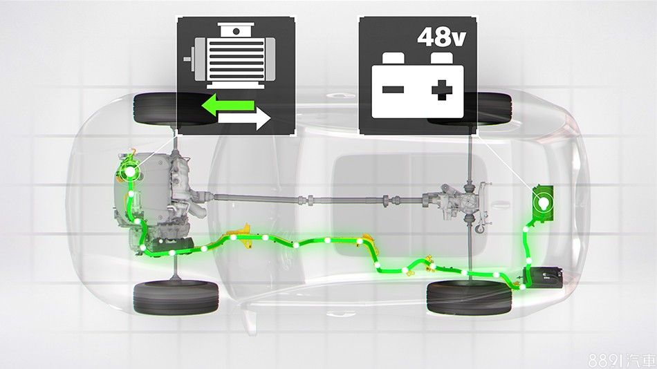 此外,隨著現代車款輔助系統、娛樂系統大量增加,既有12V車電系統也漸漸不堪負荷,而導入48V車電系統之後,不僅能應對大量電裝品需求,甚至空調壓縮機、機油泵浦、水泵浦等也都能改以48V系統驅動,在引擎周邊靠著電力正常運作的前提下,甚至能做到引擎「熄火」滑行,進一步提升長途油耗表現。