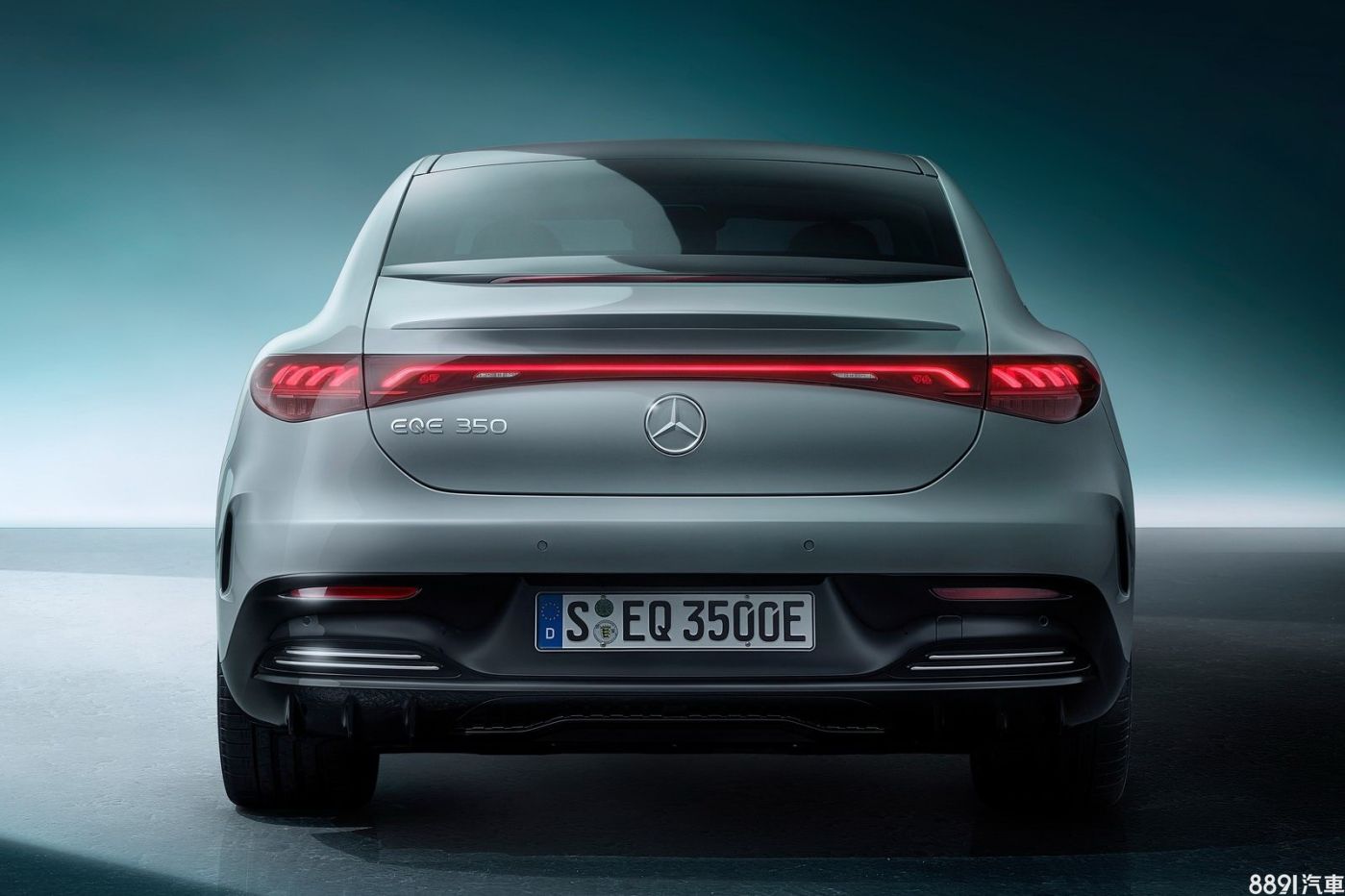 EQE尺碼與現行CLS相去不遠,外觀特徵與EQS有異曲同工之妙,其車頂線條也採用了原廠稱之為「一體式弓形」的設計,並於車體減少接縫處,視覺上強調簡潔、一體成型的效果,相較EQS,頭尾燈組等細節處,加入更多曲線元素,與LED頭燈相連的仿水箱護罩內部圖樣則可依車型不同,提供不同款式可選。