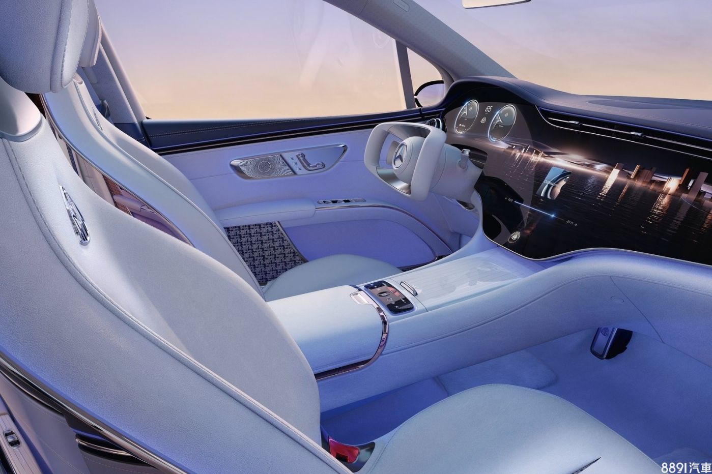 內裝則「理所當然」的非常奢華,在延續EQS的設計語彙之下,加入Maybach專屬的奢華配備,像是大量的玫瑰金飾板、後排獨立雙座等設計,另外在概念車上採用了上下扁平的Yoke方向盤也是一大亮點,當然也具備那巨大的MBUX Hyperscreen數位中控台。