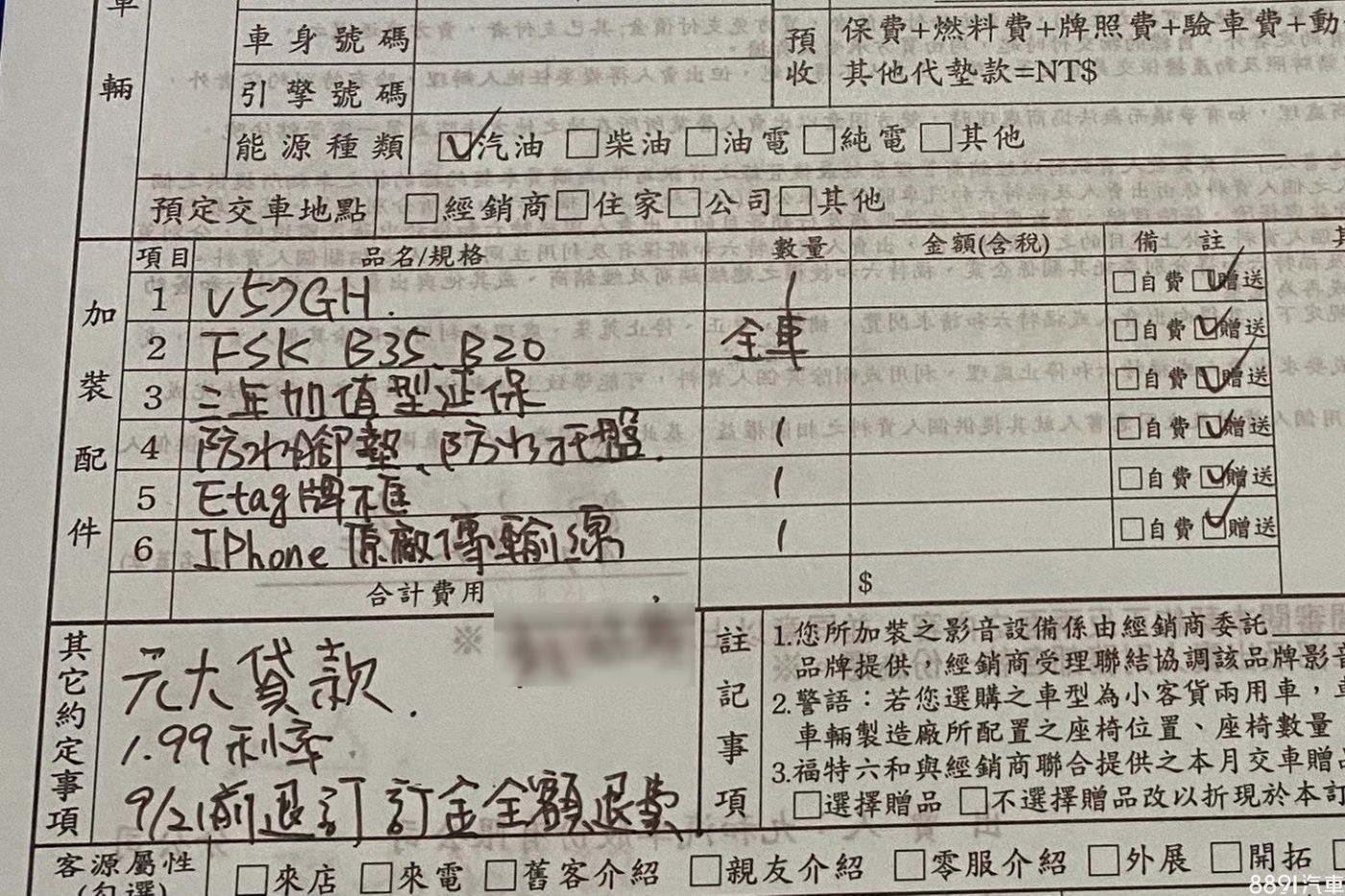 除了上面幾項常見的買車贈品,還有許多品牌端、經銷商端額外加贈的優惠方案,也凸顯了買車、談訂單要做的功課還真不少!各項加裝配件是否符合需求、價格是否公道、贈品是否全數附上等細節都得一一確認才行,一旦談定訂單細節,切記要請業務將配件品牌、型號一一註記在訂單上,畢竟有著正式文件為證,代表雙方都同意這筆買賣交易與各項細節,對於買賣雙方才會真正有保障。
