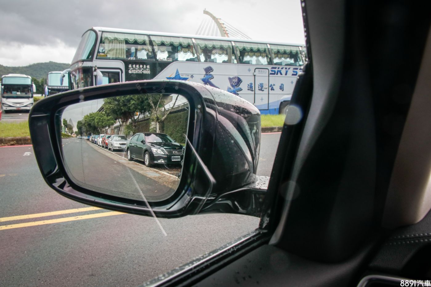 除了觀察車身與邊線角度,也可利用左邊後視鏡觀察後方車輛,當看到後車車頭超過一半,代表車身角度已足夠。