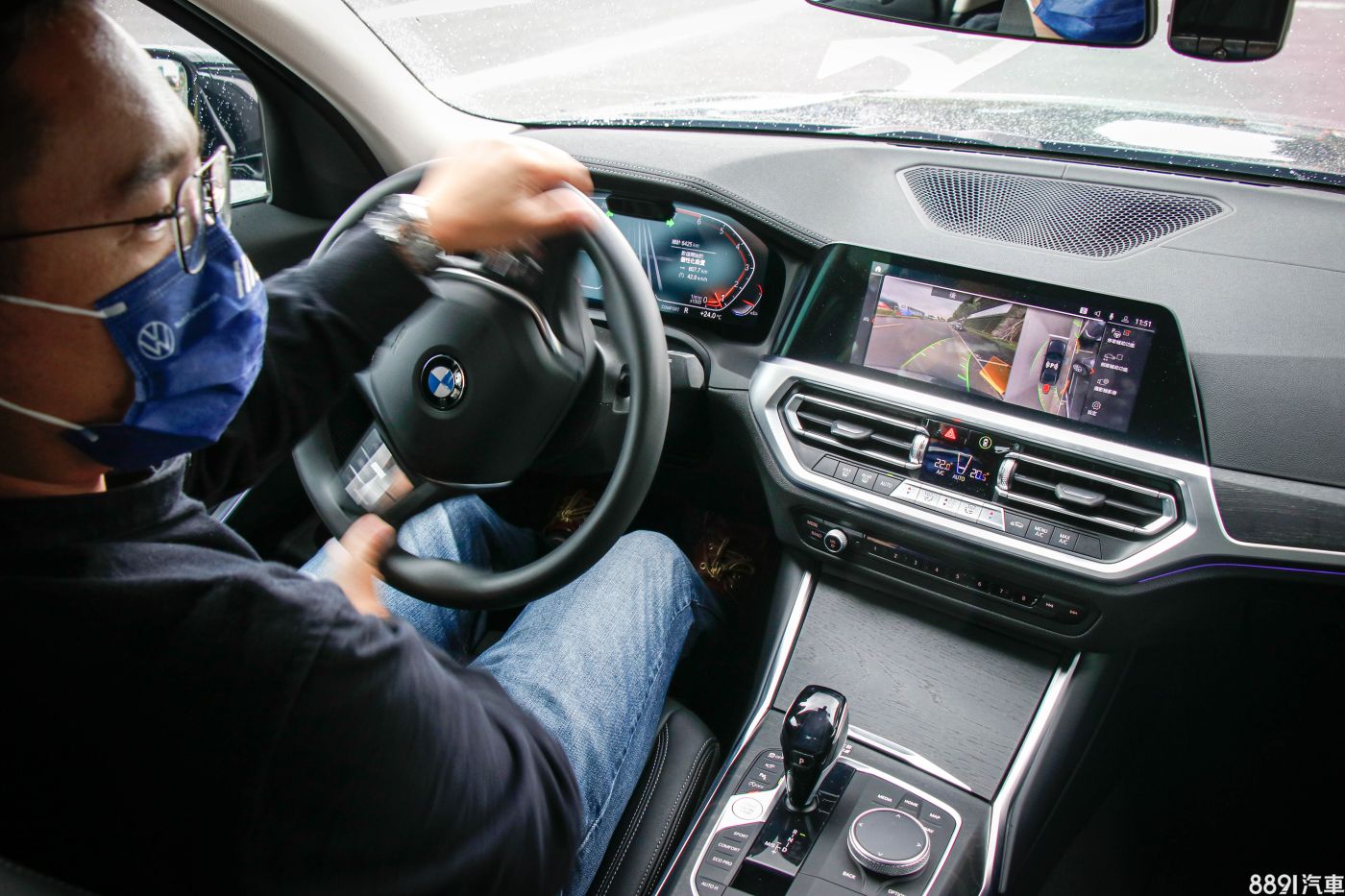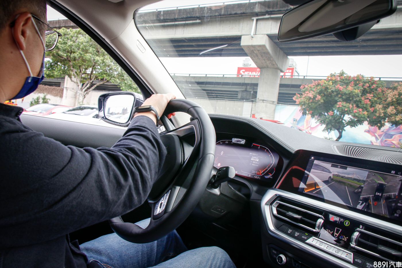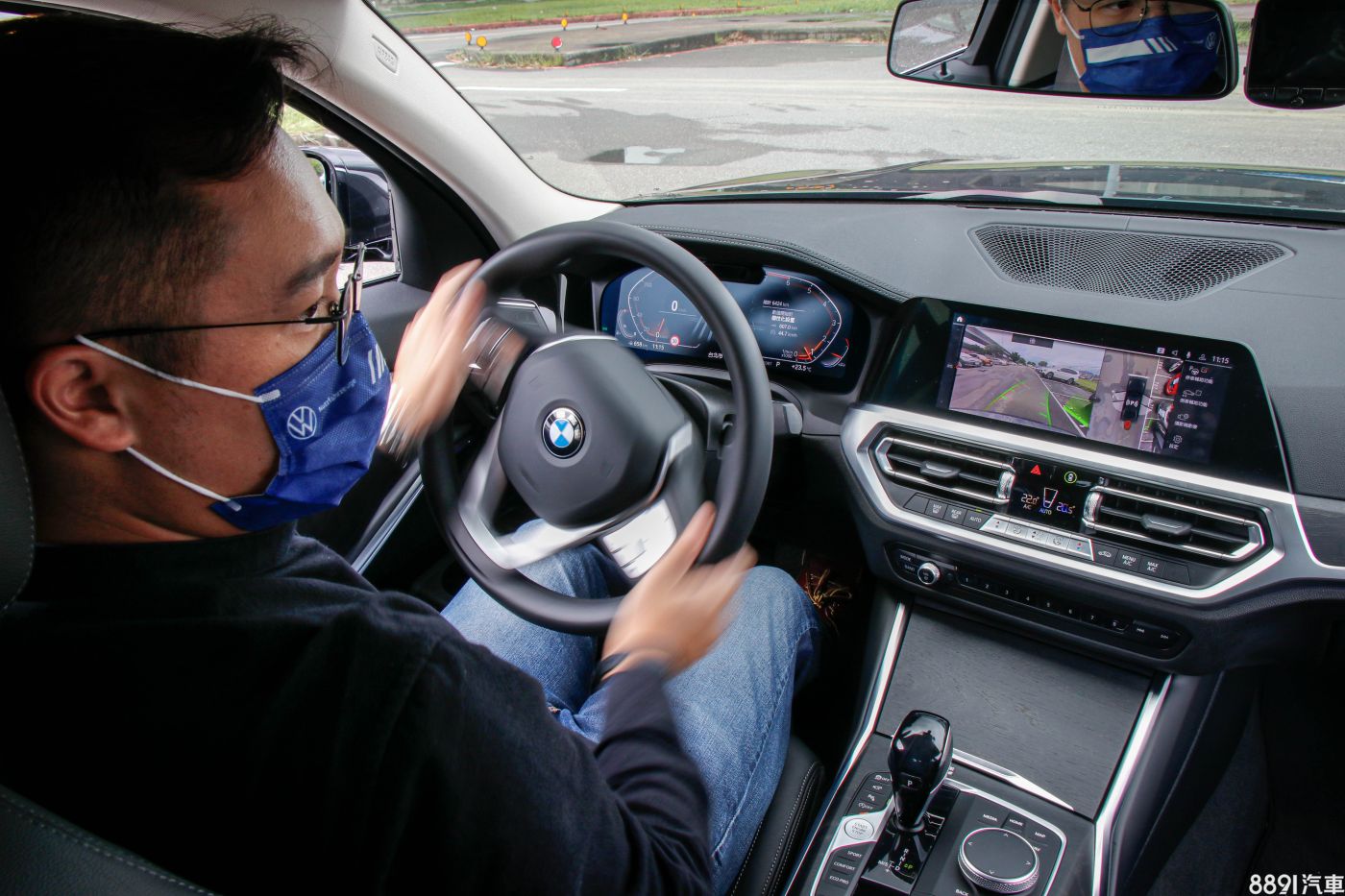 若左後輪已在格線內,將方向盤左打到底並持續後退,便會發現車身逐漸退進車格內。