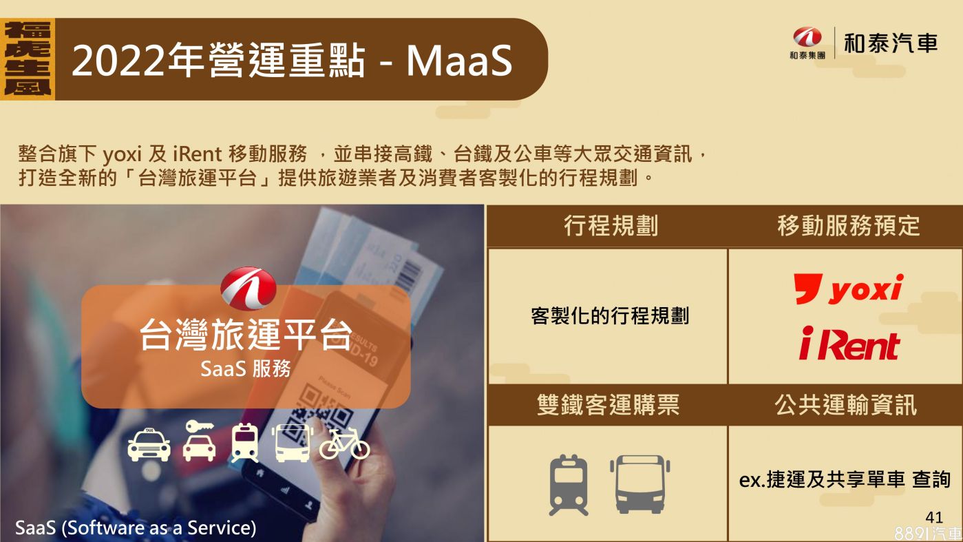 另和泰集團乘車派遣服務yoxi在2021年已完成250萬服務趟次,2022年目標預計達成60萬會員數、6000台車輛數,以及600萬服務趟次。而目前全台唯一同時提供共享汽、機車服務的平台iRent,也將於今年擴大共享汽車規模到8000台,提供會員更方便、即時的24小時全天候移動服務。