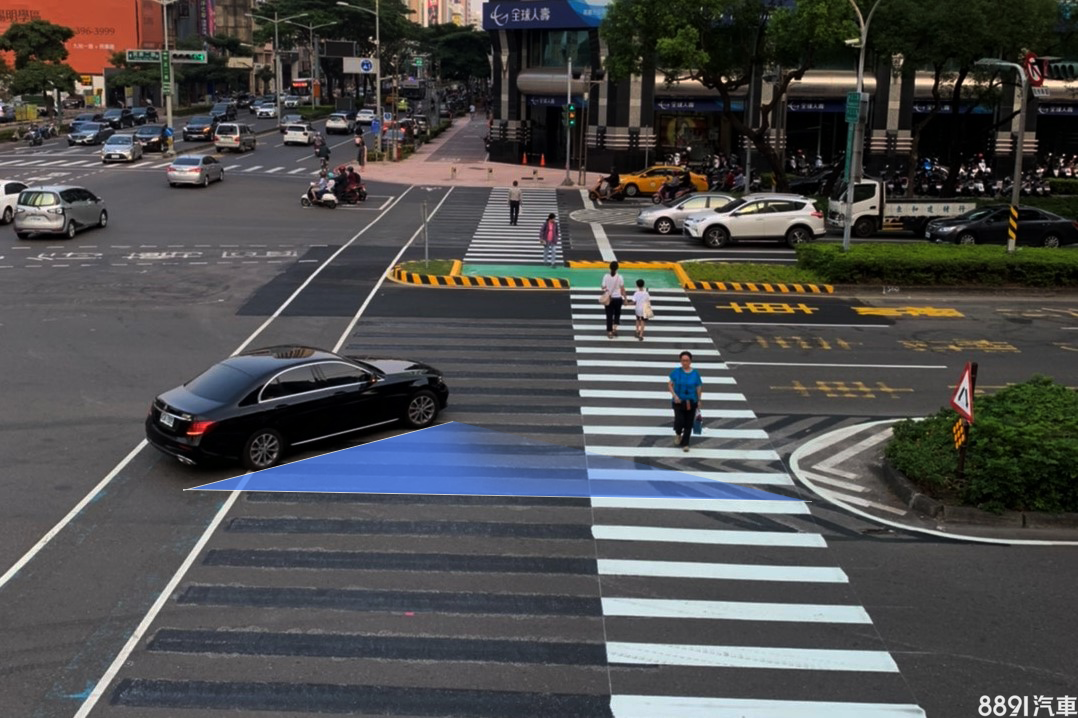 但這樣的行為其實會使轉彎角度變小,進而讓駕駛的可視角度減少,如果再加上車輛本身A柱阻擋的因素,很容易會不小心對斑馬線上的行人造成傷害。這時若能把供行人穿越的斑馬線給退縮至路口更內側,讓車輛轉彎時擁有更大的角度與距離,將可有效緩解行人發生發生意外的可能性。(圖/台中市政府交通局)