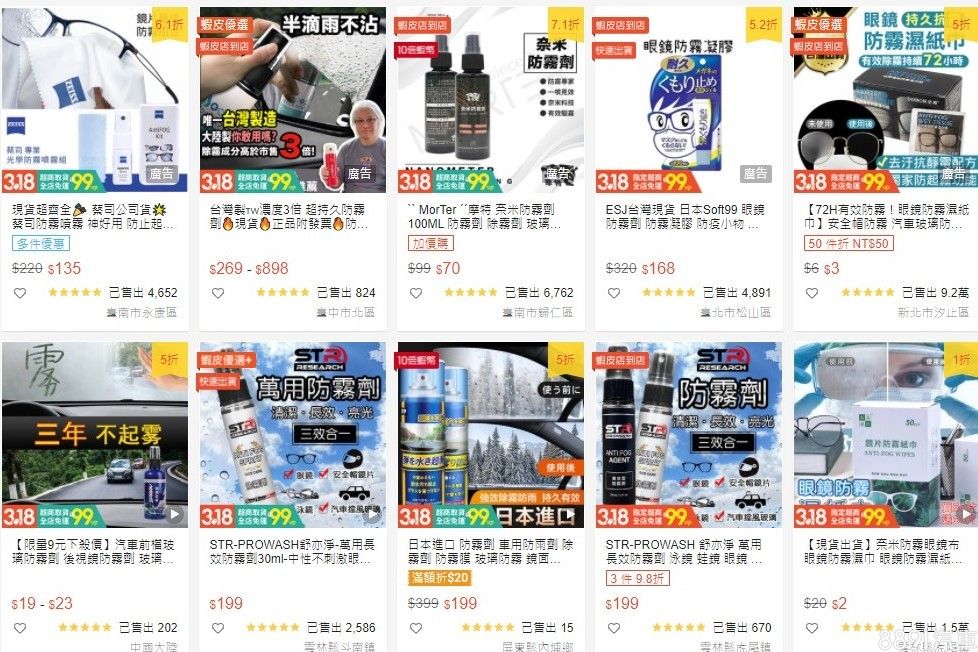 市面上也有許多防霧劑可供使用,其原理是利用界面活性劑來降低水的表面張力,讓玻璃上凝結的小水珠不會一顆顆分別排列,反而會集中形成一道天然的水膜,水膜的光線穿透性將比起小水珠來的優異,因此能最大程度的減少視線影響。這類防霧劑算是相對持久、主動的防霧方式,只要塗抹在車窗內側就可以將防霧效果維持1~2週左右,但要注意防霧劑必須使用中性溫和的成分,否則很有可能會傷害到隔熱紙甚至是車窗本身。(圖/蝦皮購物網)