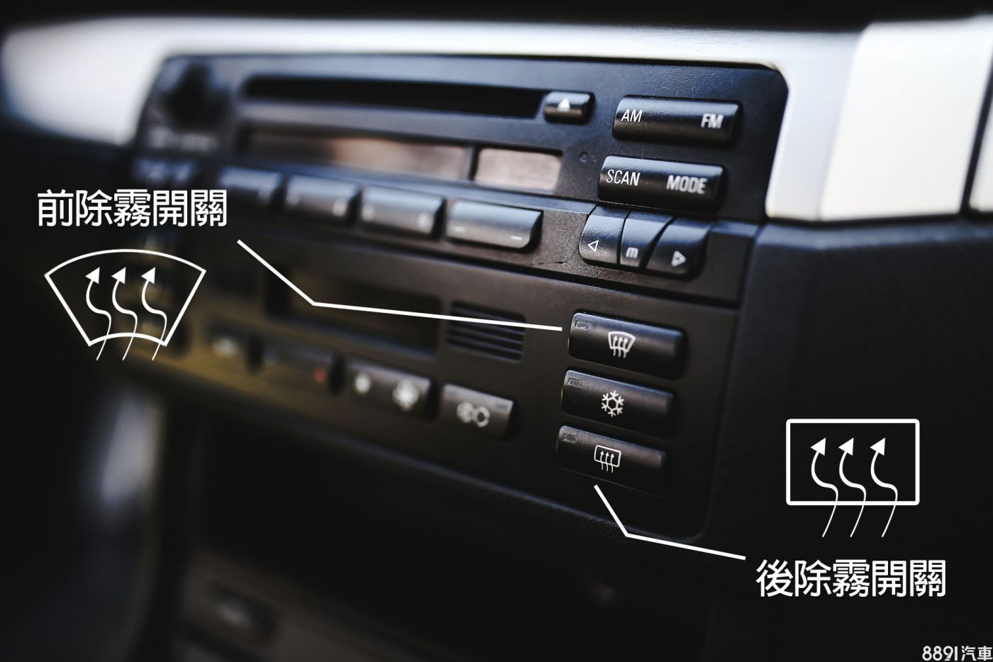 其實車輛本身也有設計除霧功能,大家只要在空調介面中尋找上圖所標示的按鈕,就能輕鬆清除前擋與後擋風玻璃上的霧珠。前擋除霧功能按下去可以讓車內冷氣集中吹向前擋風玻璃區域,大量乾燥冷空氣將可使玻璃上的霧珠快速蒸散掉。