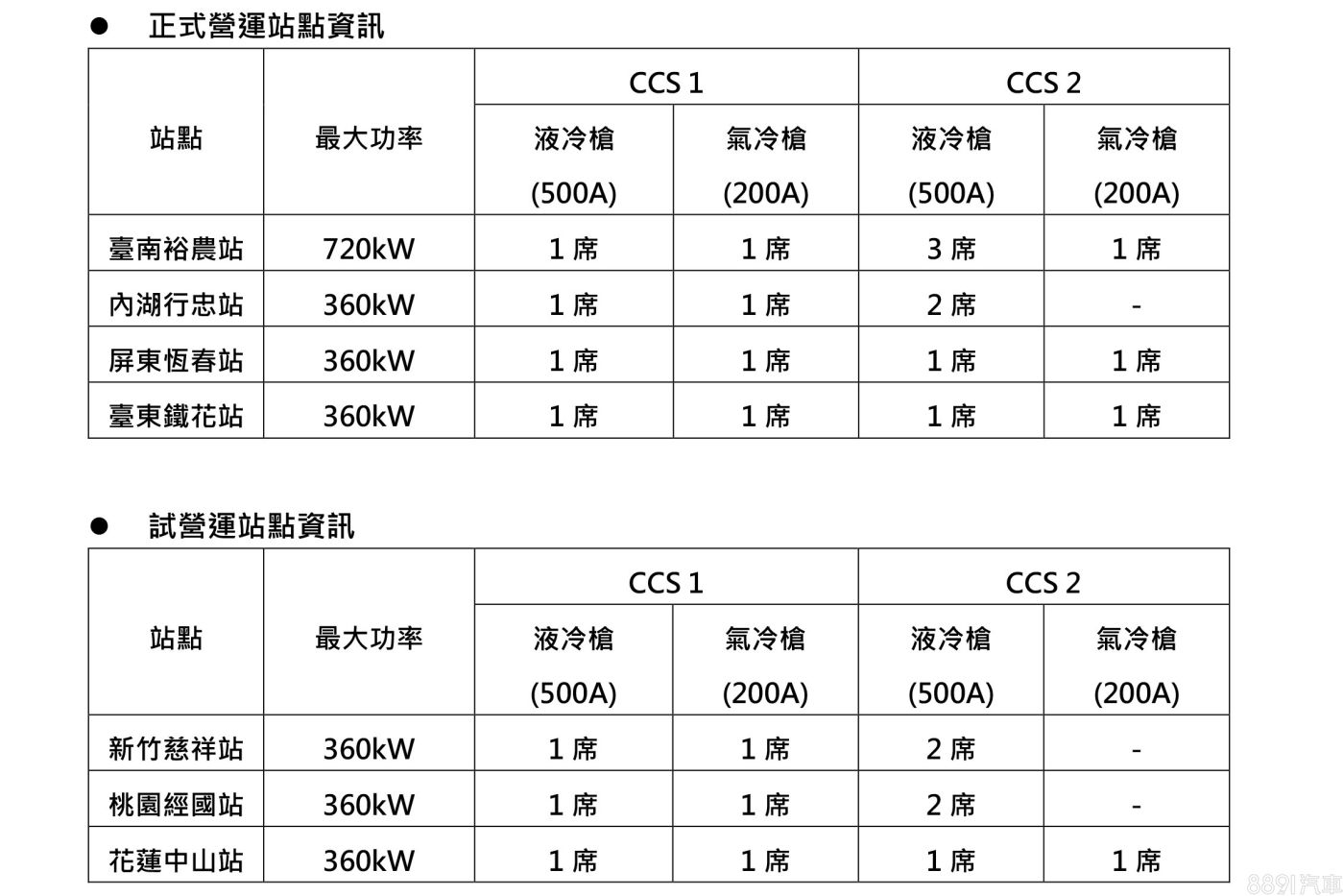 U-Power台南裕農站提供720kW高功率高速充電服務,共建置兩個360kW能源櫃,規劃出共2席CCS1、4席CCS2充電車位;其中高功率充電效率的液冷槍(500A)配置,則是CCS1有1席、CCS2有3席,在理想狀態下,使用液冷槍可實現所有電動車最高充電功率。此外,原廠表示,營運初期先以720kW功率提供服務,並已為未來預留可升級至更高功率的服務量能。
