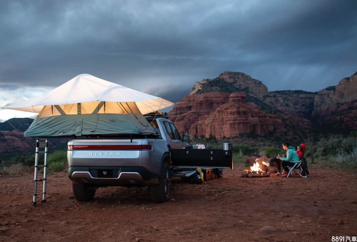 來自美國的新創品牌Rivian,旗下所推出的電動皮卡,也活用反向供電設計,除了一般插座電力輸出之外,來推出整合進電磁爐推出野炊套件,搭配原廠帳篷,不用找露營區,晚上也能燈火通明。