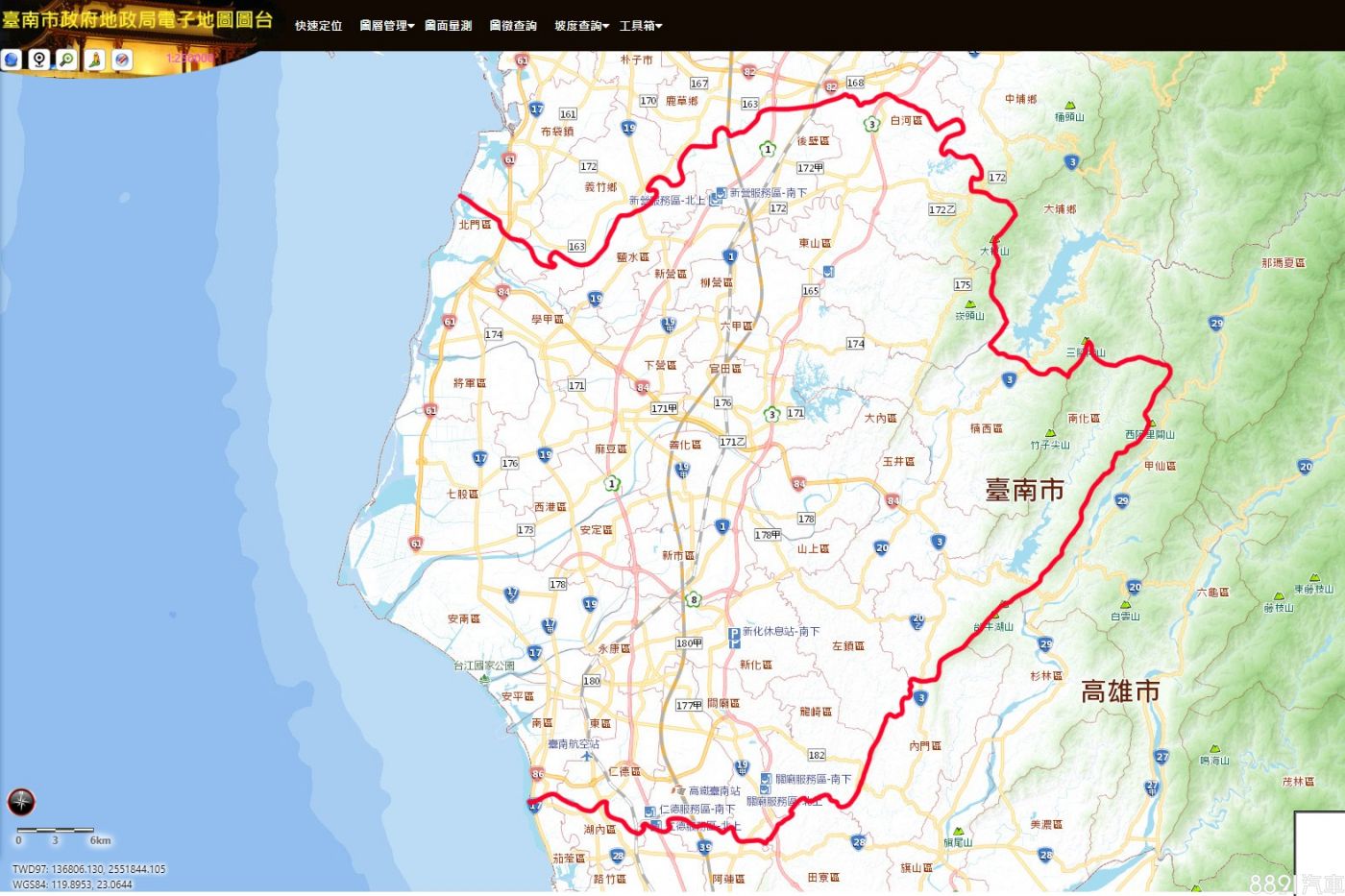 台南市是境內公路總長最長的縣市,累計路長達2160km,也是台灣唯一公路總長超過2000km的縣市。此外,台南市也身兼「最長國道總長縣市」和「最長快速公路總長縣市」兩頭銜,市內包含140km的國道路段和83.8km的紅盾省道。(圖/台南市地政局)