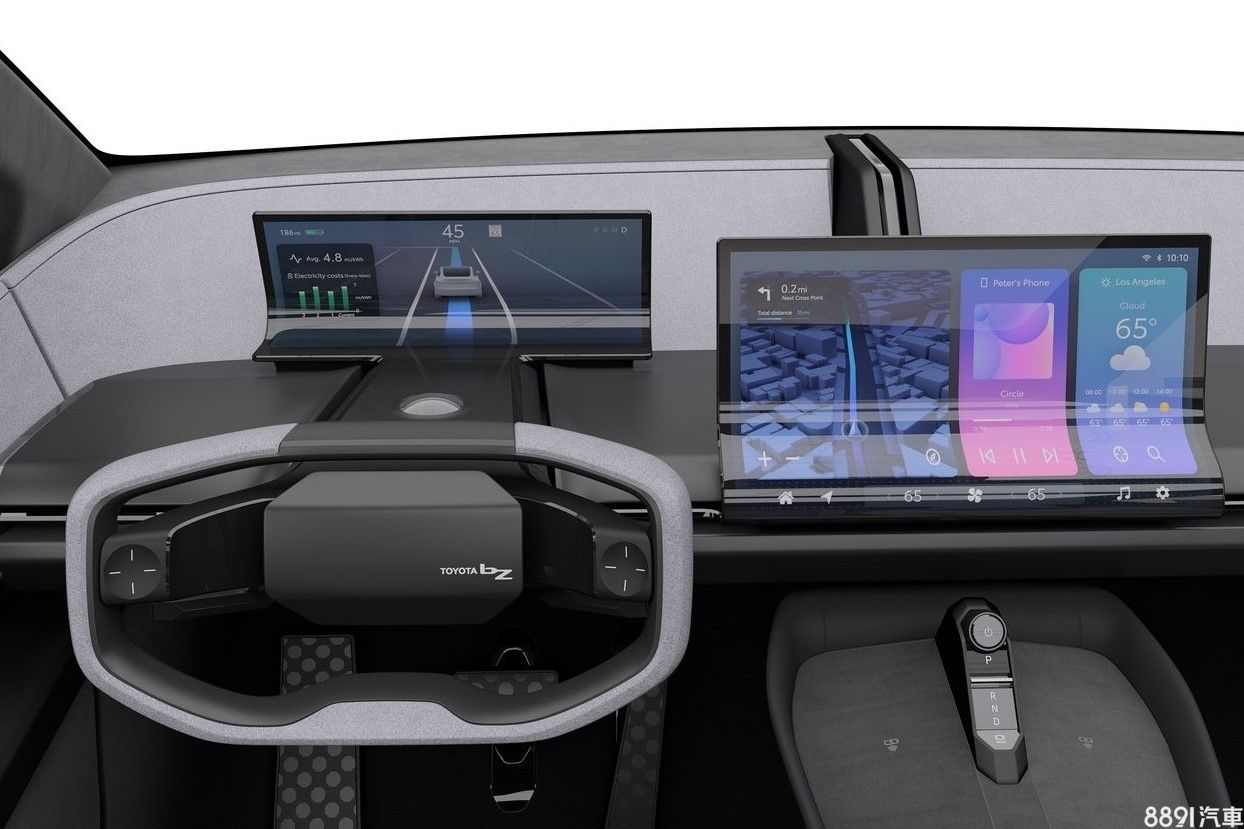 內裝重點得放在儀錶板、中央螢幕,陳設位置與bZ4X相似,但面積更大且用上「曲面螢幕」設計,其用意就是能盡可能放大尺寸,也不遮擋駕駛視線。方向盤則採用長形方向盤,讓方向盤上緣不會遮擋儀錶,這樣的內裝看起來科幻之於,若能量產也充滿實用性。