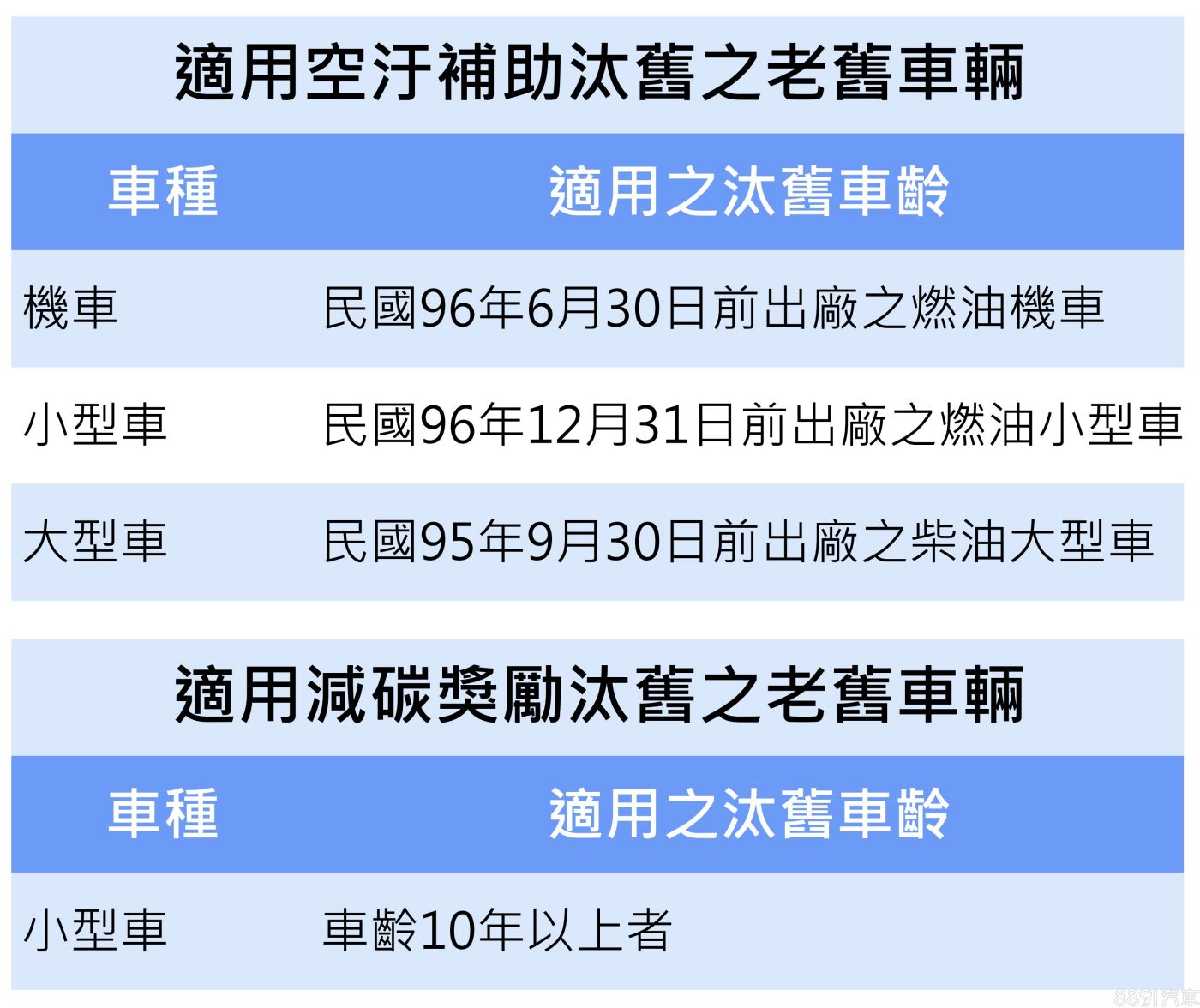 環保署於12/15公布「老舊車輛汰舊換新空氣污染物減量補助辦法(空污補助)」及「老舊汽車汰舊換新溫室氣體減量獎勵辦法(減碳獎勵)」兩項草案,預告將於明年1/1起正式上路,並預計實施2年。