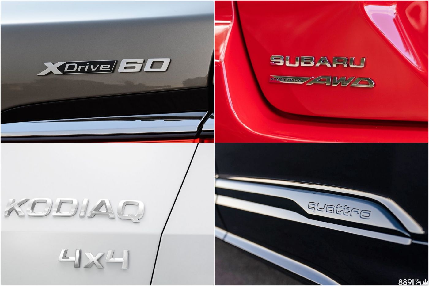 與引擎科技相同,對於四輪驅動系統,除了最直接的放上4x4、4WD,許多車廠也會有各自不同的名稱,像是賓士的4-Matic、BMW的xDrive、Audi的quattro、福斯的4Motion與速霸陸的Symmetrical AWD等等。