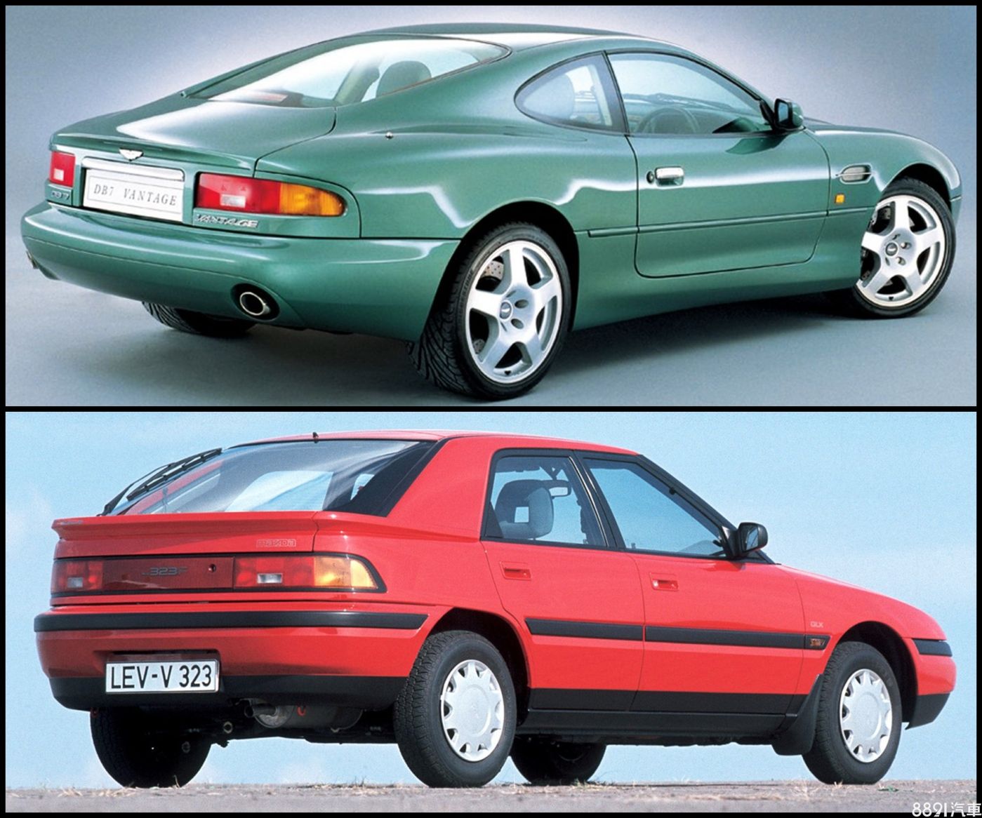 一款英倫豪華跑車,竟也和跨越大半地球的日本平價房車有淵源?其實DB7配備與第七代馬自達323同款的尾燈,可自燈組排列看出端倪,不過由於Aston Martin特別在燈組外加上車身同色飾框,才會看起來較為細長圓潤。說穿了,當年兩家車廠都隸屬福特集團旗下,共享零件倒也不算太過意外。