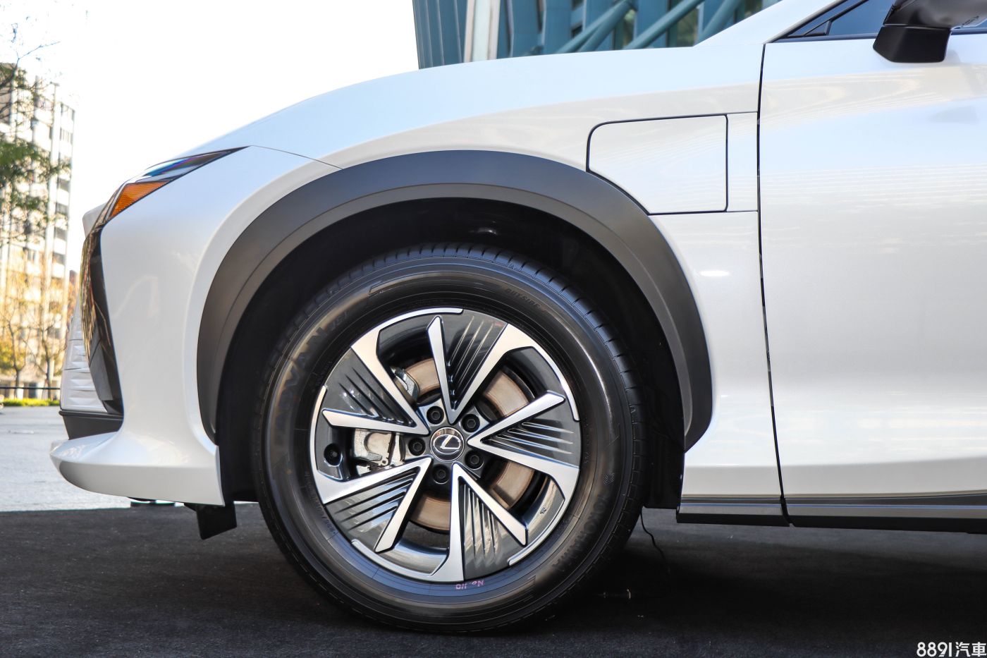 展示款配備18吋鋁圈,採雙色塗裝,不過在RZ上搭配起來顯得有點張力不足。配胎選用235/60R18的橫濱Advan V61,是豐田原廠OE胎,因此規格與尺碼皆與bZ4X相同。