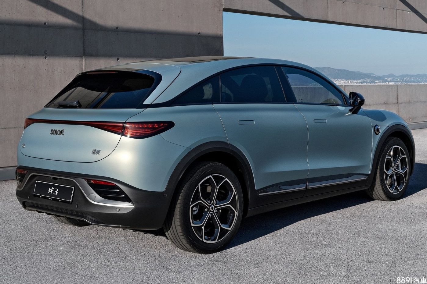 Smart #3車身尺碼比起Smart #1略大一號,和M.Benz EQA相近,但車高再矮了一些,原廠將其定位為「運動型多功能轎跑車」,新車擁有趨於圓潤的身形,相連式頭燈組沿襲品牌特徵,不過透過更大的仿前氣壩、高腰線、車頂自B柱後向下傾斜的幅度,塑造更動感的視覺風格。