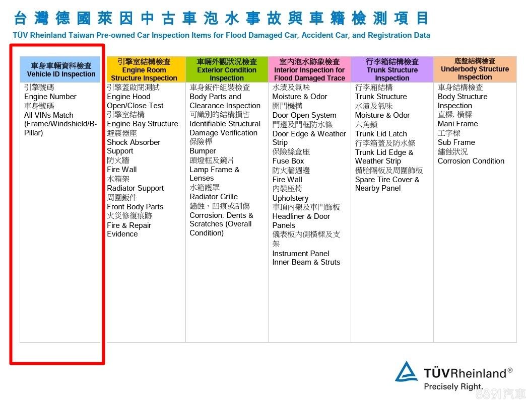 中古車況該怎麼看,相信普羅消費者都一知半解,更別說識別偽造車身號碼這等難題,因此挑選「有第三方認證」中古車,就是最安全保險的選擇。以德國萊茵認證為例,一開始就會針對引擎號碼、車身號碼檢查,如果與車籍資料不符合,或者有變造痕跡,都會有註記說明。