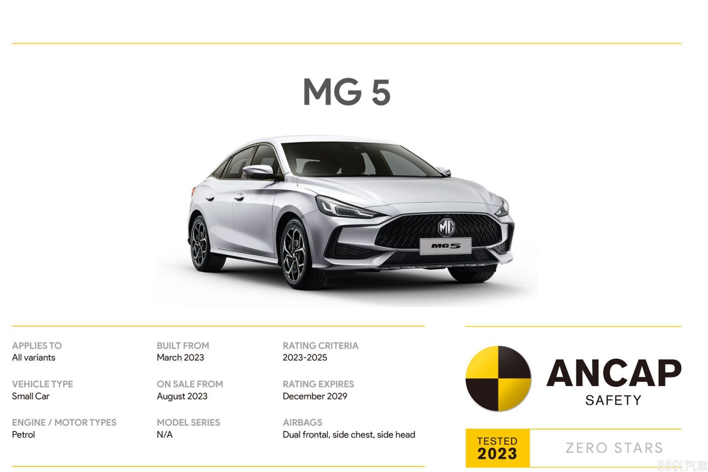 不過入手門檻低,犧牲的是安全配備,先前MG5在澳洲開賣前,就由於僅符合當地最低標準:AEB與6氣囊之配置,被澳洲新車安全評鑑協會ANCAP,評估可能只能取得碰撞測試三顆星或更低的成績,當時MG澳洲執行長Peter Ciao曾向澳媒表示,為了降低售價而減少安全輔助配備對於車廠來說,確實是一步險棋,但對於原廠來說,MG5在當地的定位,就是為了那些預算有限、卻需要買車的消費者所推出的產品,而澳洲MG也準備好了接受訂下此策略的風險。