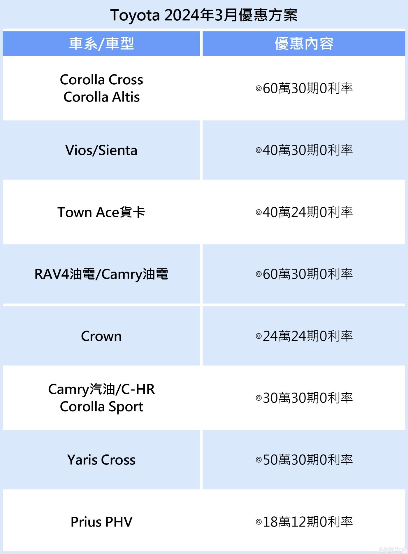 Toyota 和泰豐田汽車本月依舊提供多種高額0利率購車方案,其中Yaris Cross從上月的20萬20期0利率,3月份調整為50萬30期零利率,讓這輛小跨界入手更容易。