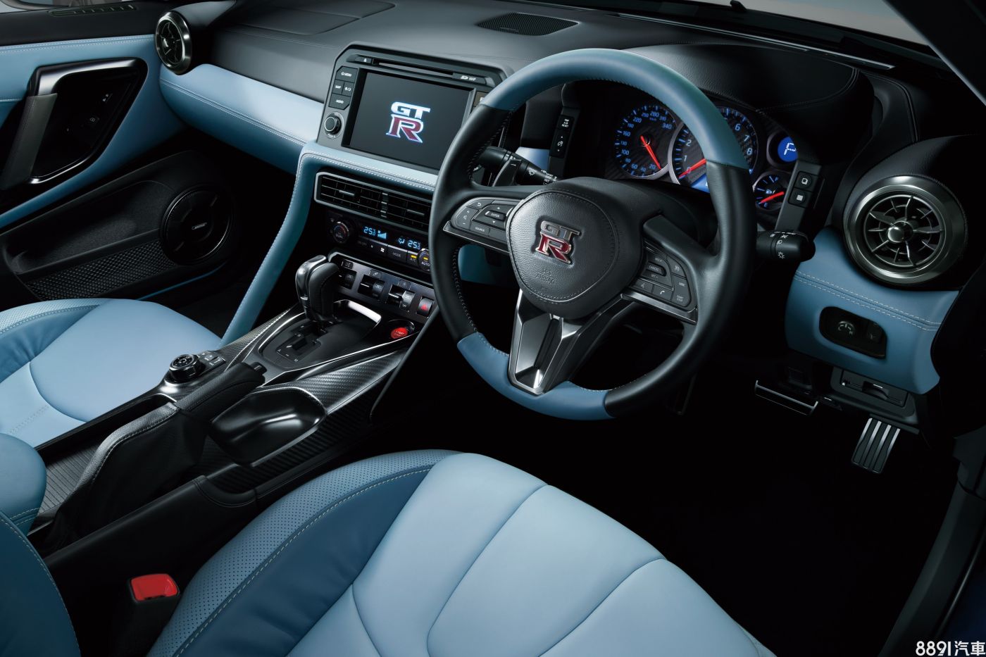 新年式GT-R標準款並沒有太多更動,主要是「Premium Edition」車型新增名為「Blue Heave」的全新內裝色,是以天藍色為基底,甫以部分深藍色飾條妝點,連同方向盤也以藍色皮革包覆,視覺上頗為時尚!