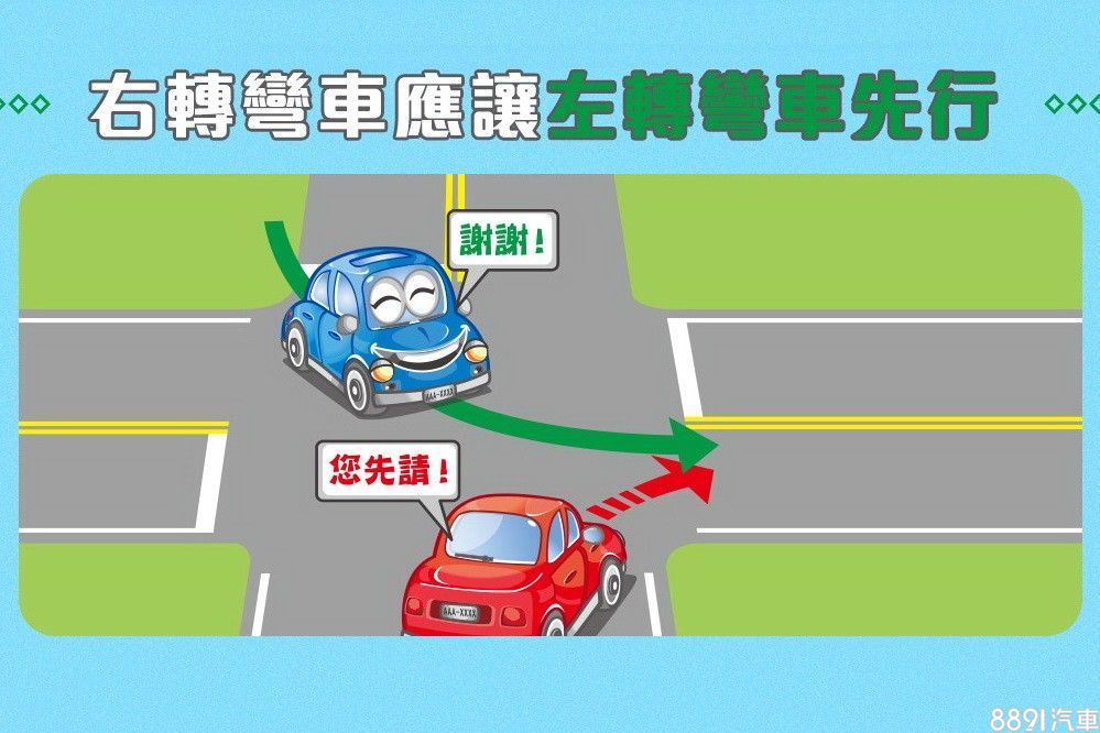 遇到雙方分別左/右轉入進入同個「單線道路口」的情況,這時右轉車應禮讓左轉車先行,因左轉車轉彎路線較長、滯留路口中心的時間也較長,因此讓左轉車優先通過能幫助緩解整體車流,而如果雙方進入的道路為兩線道,則須遵守左轉車進入內側車道、右轉車進入外側車道的原則。(圖/168交通安全入口網)