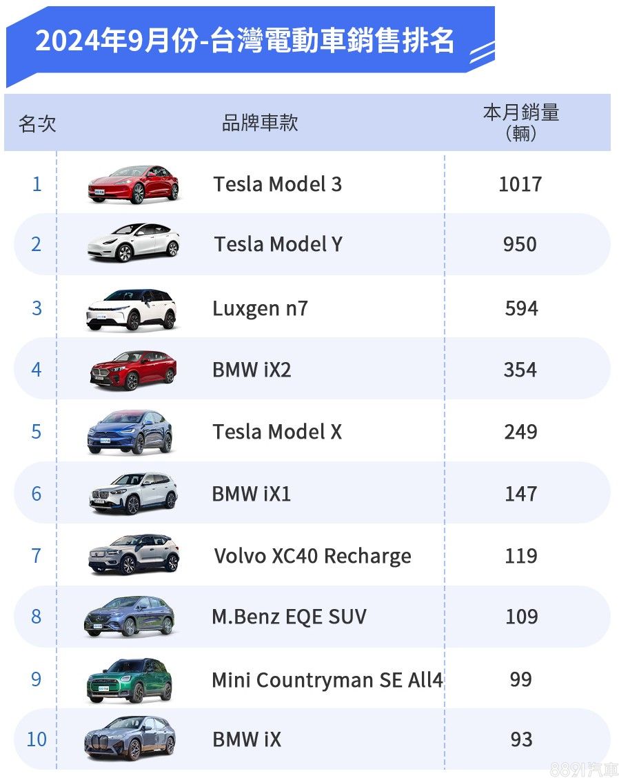 不意外地,Tesla是當月拉抬銷量的最大功臣,獨立繳出2261輛掛牌數,佔整個電動車市場超過5成,國內現售的旗下四個車系,就有三款搶進Top10,其中Model 3和Model Y更雙雙拿下冠、亞軍頭銜。