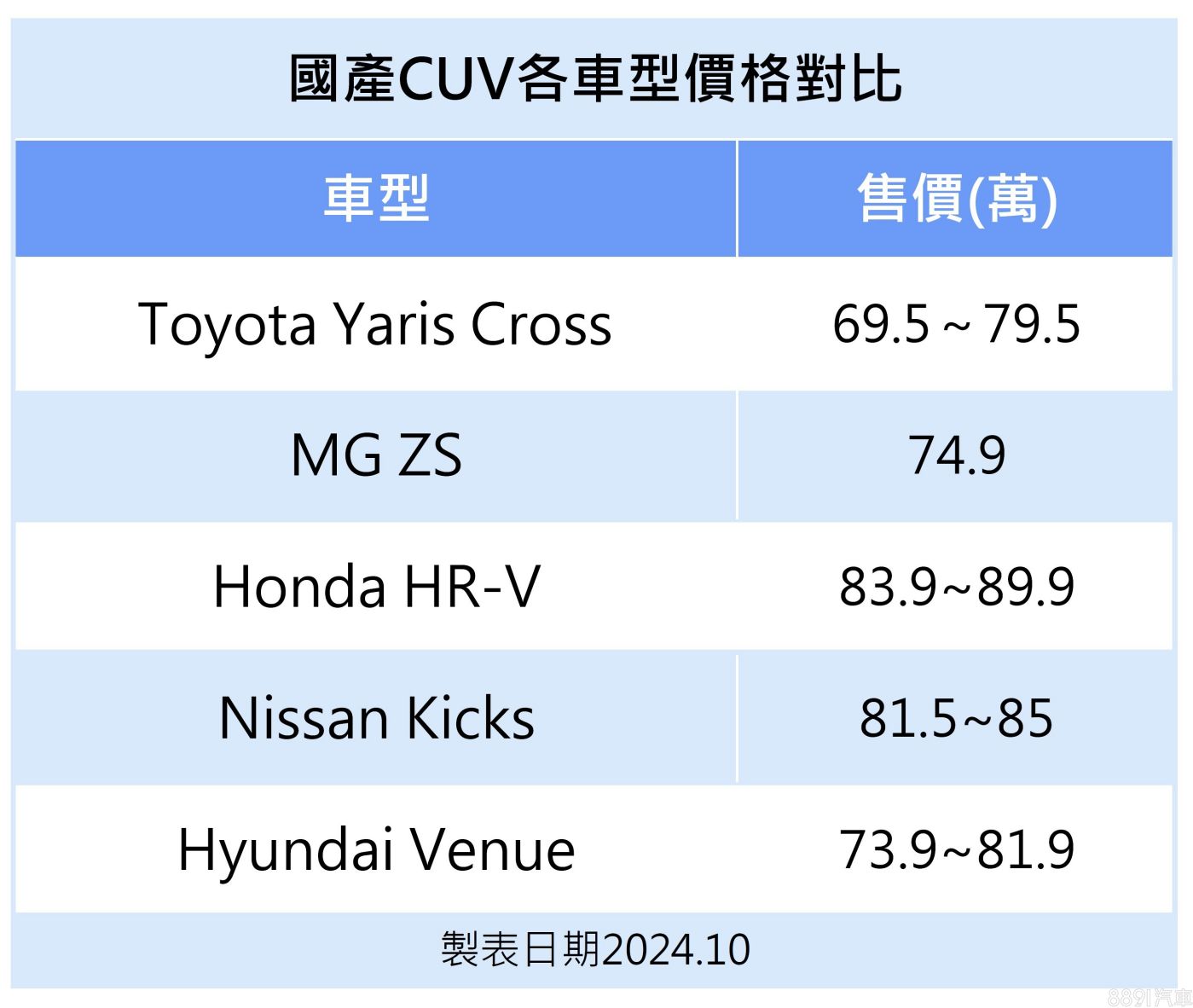 2025年式Yaris Cross維持「享樂版」、「酷動版」、「潮玩版」三車型編成,售價依序為69.5萬、73.5萬、79.5萬,相比舊年式調降1.5~2.5萬不等。據了解新年式僅售價調整,配備方面未做變動,全車系依舊將LED頭尾燈、9吋Drive+ Link多媒體車機、TSS駕駛輔助系統、6具SRS氣囊列為標配。