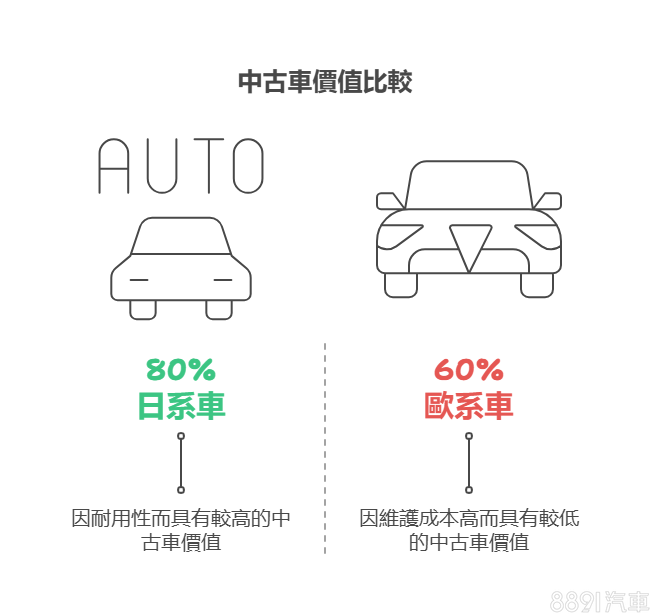 不同品牌和車款的保值率差異很大。日系主流品牌在台灣市場一向以耐用、養護成本實惠著稱,因此保值率較高;而部分歐系車款雖然性能優越,但維護費用較高,二手價格就可能不如日系車穩定。