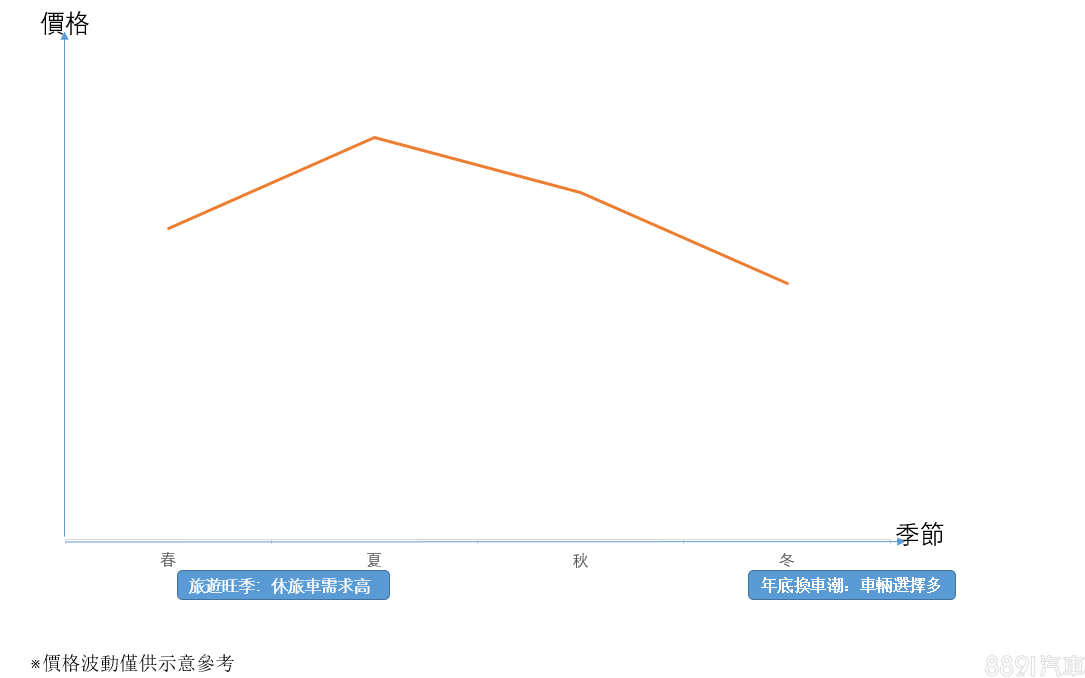 中古車的價格也會受到市場供需影響。例如,夏季是旅遊旺季,SUV或休旅車的需求可能會增加,有機會賣個好價格;而年底通常是換車高峰期,中古車的選擇更多,價格也可能更有彈性。