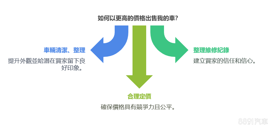 - 整理待售車輛:乾淨的車內外觀能給買家留下好印象。