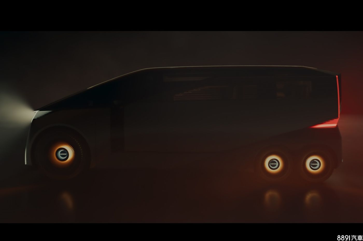 車側可見動感的車頂弧線,搭配方正的車身線條毫無違和,並採用前開式的滑門設計,方便乘客進出座艙,座椅配置看起來是2+2座。