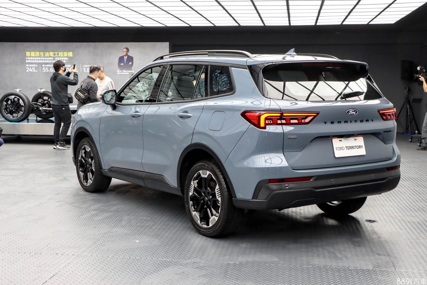 Territory車頂輪廓平直,搭配延伸至車尾的窗框飾條,讓車側看起來更顯修長。車尾設計相對簡潔、鈑件造型立體,L型尾燈燈組與頭燈樣式相呼應,搭配置中一字排開的Territory車名,整體風格甚至帶點Kuga的既視感。