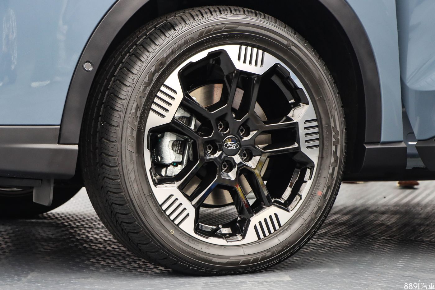 展示車配備19吋五輻雙肋鋁圈,採雙色塗裝,搭配235/50 R19的瑪吉斯HP M3輪胎,是款專為休旅車款開發、強調行車舒適性和節能性的胎款。此外,為了加強乘車體驗,原廠宣稱新車在減震、降噪工程上也進行加強。