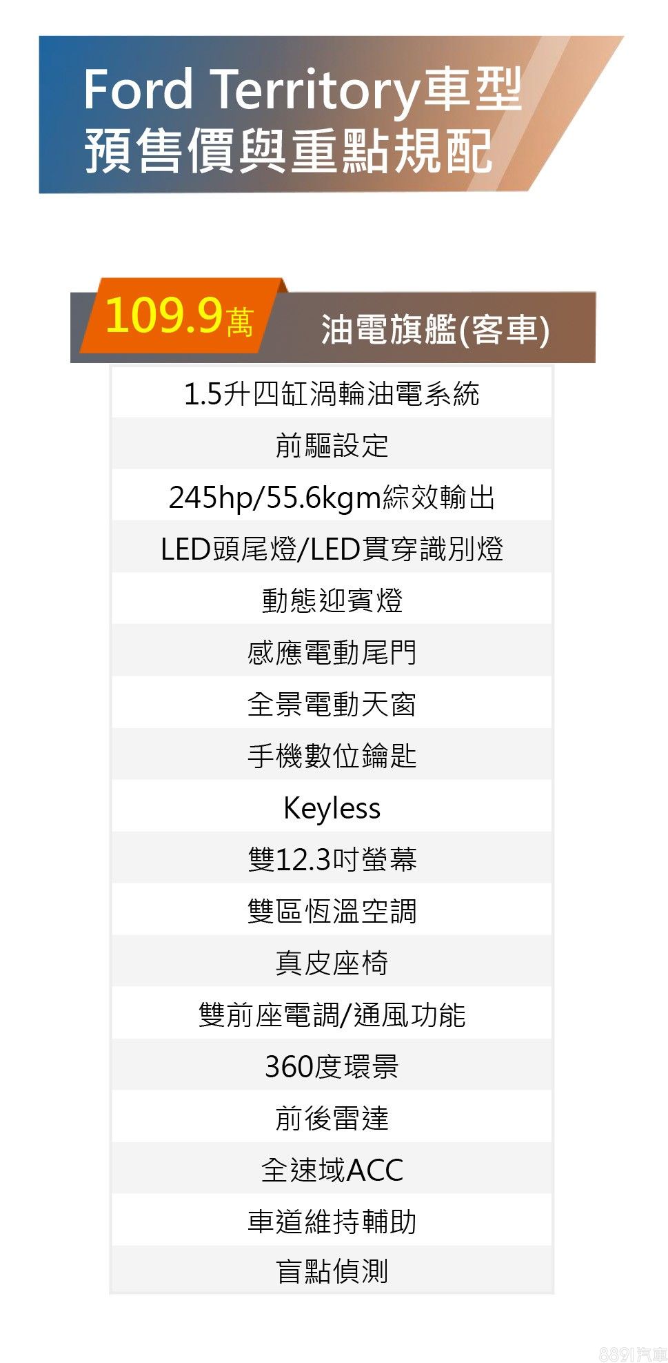 值得一提的是,除了搶先預售的「油電客車」外,官方其實稍早也送測了「油電客貨車」、「汽油客貨車」等版本,不過品牌方面仍婉拒揭露Territory車系完整陣容,包含國內車型編成、價格帶和實際上市日期,都有待未來後續公布。