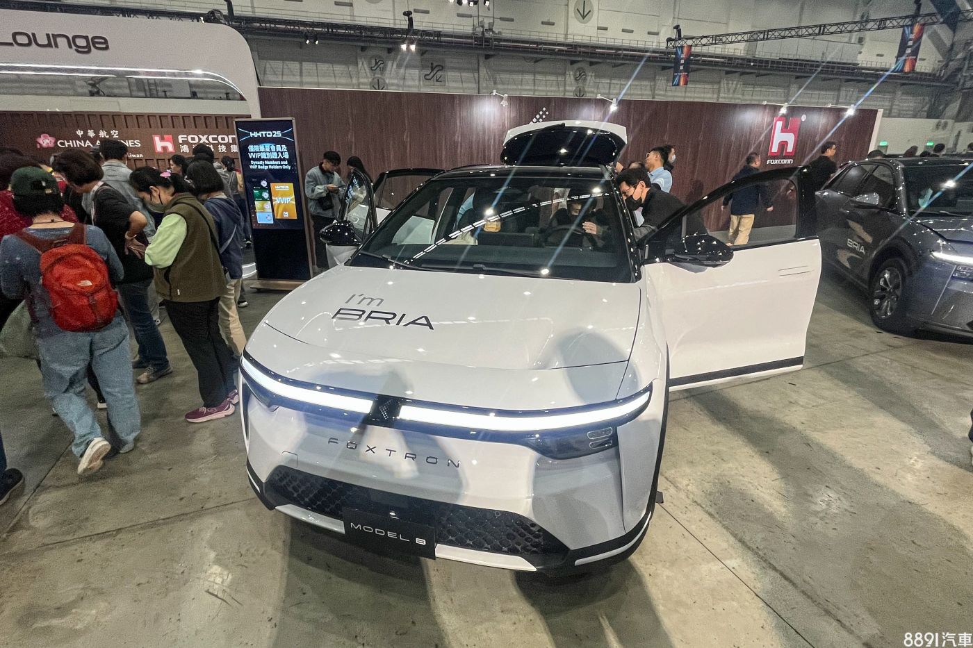沒想到今(22)日民眾日,展示車直接在前廂蓋或車側貼上「I’m Bria 」的車貼,而這也是以「Foxtron Bria」之名首度對外公開亮相,此舉也被視為正式定調命名,同時也開始收集潛在買家、替未來上市鋪路!