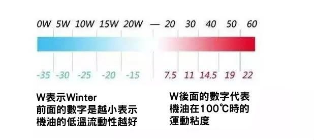 “W”表示winter冬季,其前面的數字越小說明機油的低溫流動性越好,機油可供使用的環境溫度越低,在冷開機時對發動機的保護能力越好。簡單來說就是結冰點溫度,如常見的0W是-35℃,5W是-30℃,10W是-25℃,15W是-20℃。
