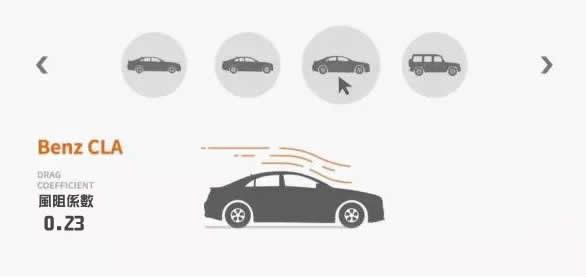 決定風阻係數的因素是在於一台車的外形設計,越流線的車子,它的風阻係數就會越小。比如賓士CLA的風阻係數僅為0.23,而G級越野車的風阻係數則達到了0.54。