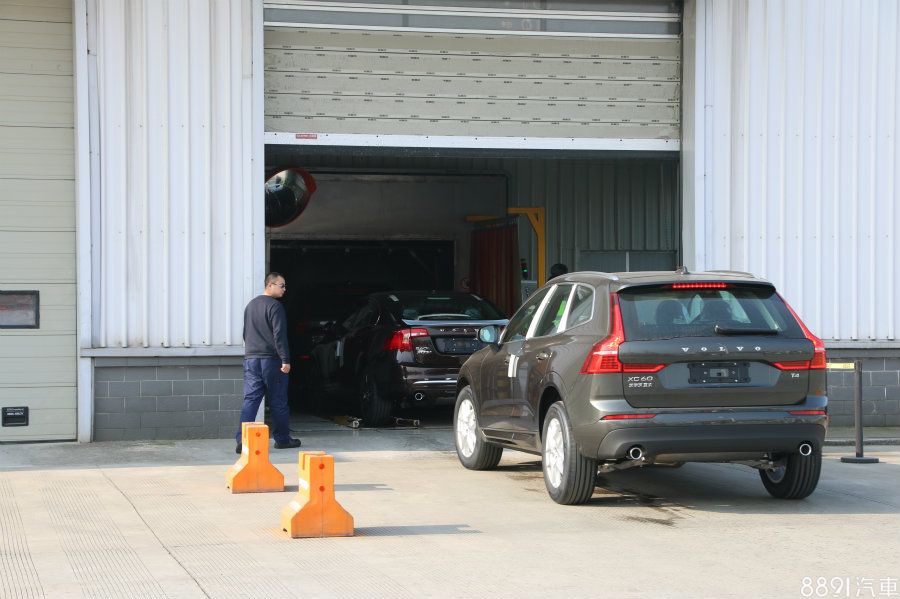 圖中可見道路測試完畢之後的車輛,依序進入淋雨關卡檢驗,目的就是在於測試車輛本身是否有漏水滴入車室的可能,一方面也是清潔車體,再開往停車場準備裝櫃交車。