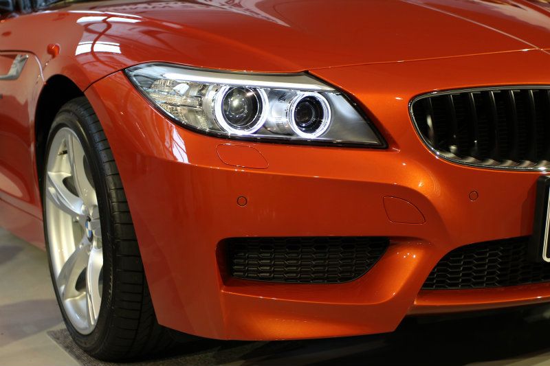 M款跑車化套件中的保桿造型更有侵略感,讓Z4外觀更有運動風格。頭燈中的白色雙環光圈,在Valencia Orange車色的襯托下顯的更明亮吸引人。