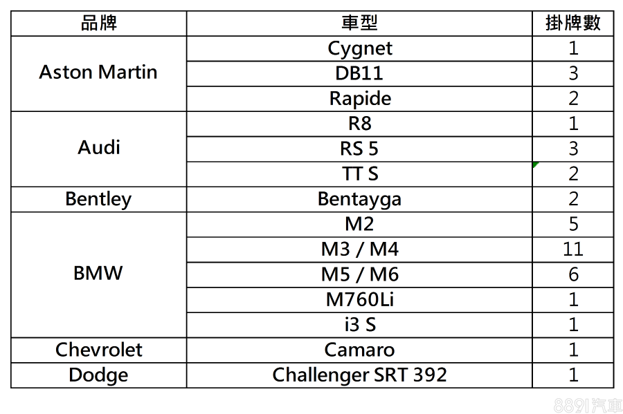稀有車掛牌數