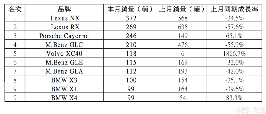 甫於8/2發表的XC40,雖說民俗月堪稱其第一個完整銷售月份,但由於為全新車款,尚無法得見銷售力道,但Volvo陸續推出新年式與配備調整,對於強化市場競爭力是否有一定效果,相信在9月份能見真章。