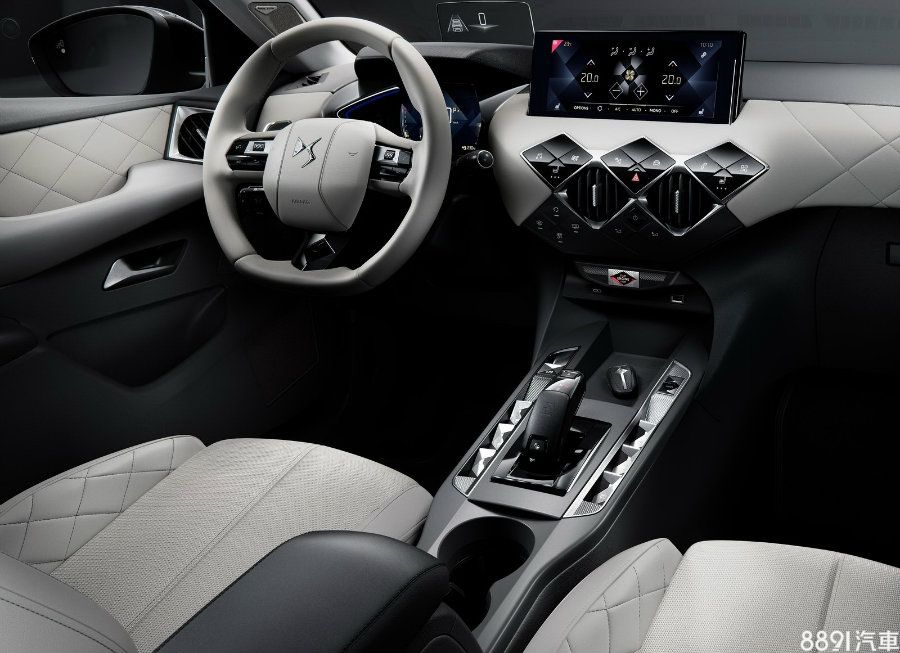 車室格局與DS7 Crossback相仿,除了中央鞍座,中控加入更多如鑽石表面的元素,多媒體系統位置則不同於「大哥」,配置在中控頂端,為10.3吋,數位儀錶能提供五種顯示模式,另有抬頭顯示器、透過藍芽連結,最多可設定5人使用,無需鑰匙就能解鎖並啟動車輛的DS Smart Access智慧車門啟閉控制系統等。