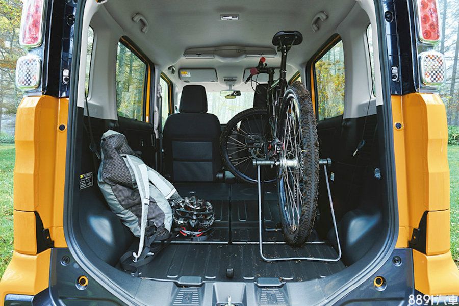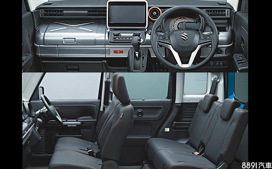 內裝則與一般Spacia版相同,採雙排五人座設定,且在中控台、前後車門版亦提供豐富儲物空間,不過車艙改搭配較為耐汙的暗色系配色,此外,椅面及後行李箱則分別採防潑水布面與防水底板,整體以實用導向為主。