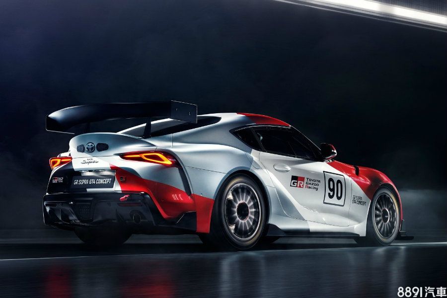 Supra GT4 Concept是Toyota GAZOO Racing以五代Supra為基礎,較一般版車長增加、車高降低,外觀除了一襲亮眼的紅、白、黑塗裝,原廠為其換裝更具侵略性的前保桿、前下擾流,以及吸睛度百分百的大型尾翼等空力套件,這些部件均使用碳纖維複合材質打造。