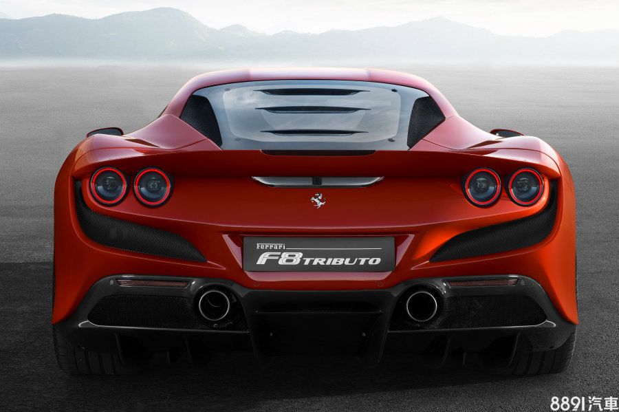 車尾以LED四環尾燈成為F8 Tributo的識別特徵,該設計同時也為了致敬Ferrari過去的經典作品。至於帶整流格柵的透明引擎蓋,設計靈感則源於Ferrari F40,不但有助於排散引擎室內的熱空氣,同時避免影響擾流板的工作效率。