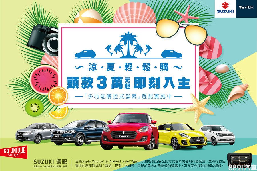 Suzuki感謝車主支持,頗獲好評的「涼夏輕鬆購」方案本月繼續展開,只要入主Swift、Swift Sport、SX4、Ignis以及Balneo等任一指定車款,即享超低月付專案,頭款只要3萬起的就能坐擁新車。