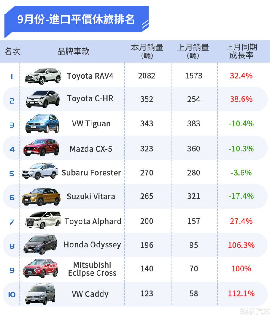 或許因為車源供應問題,平價休旅排榜有消有長,才在國內上市不久的Vitara,熱度也稍稍出現疲緩,於9月帶來17.4%的跌幅。