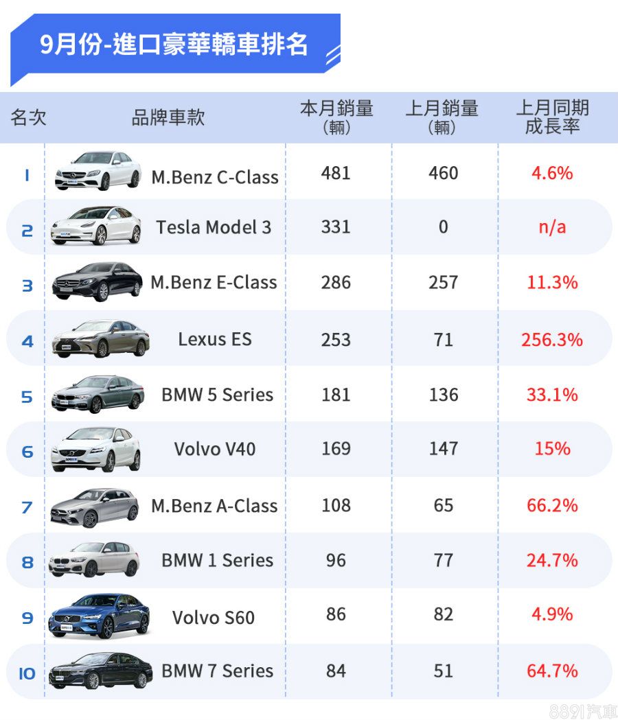 而論其本期榜上最亮眼的入榜者,無疑非Tesla Model 3莫屬,不僅拿下進口市場第八的名次,將範圍縮縣至豪華轎車中,Model 3可是有著僅次於三芒C-Class的銷售實力呢!